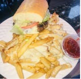Topped in steak, tomato sauce, onions, peppers, and classic cheese.