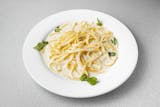 Sauteed in garlic and oil in a choice of milk, medium or hot sauce and served over linguine.