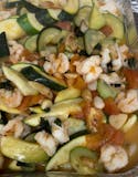 Breaded shrimp pan-fried and topped with tomato sauce and mozzarella cheese.
