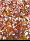 Fresh tomato basil sauce, imported salami and prosciutto, black olives, mushrooms, artichoke hearts, and homemade mozzarella.